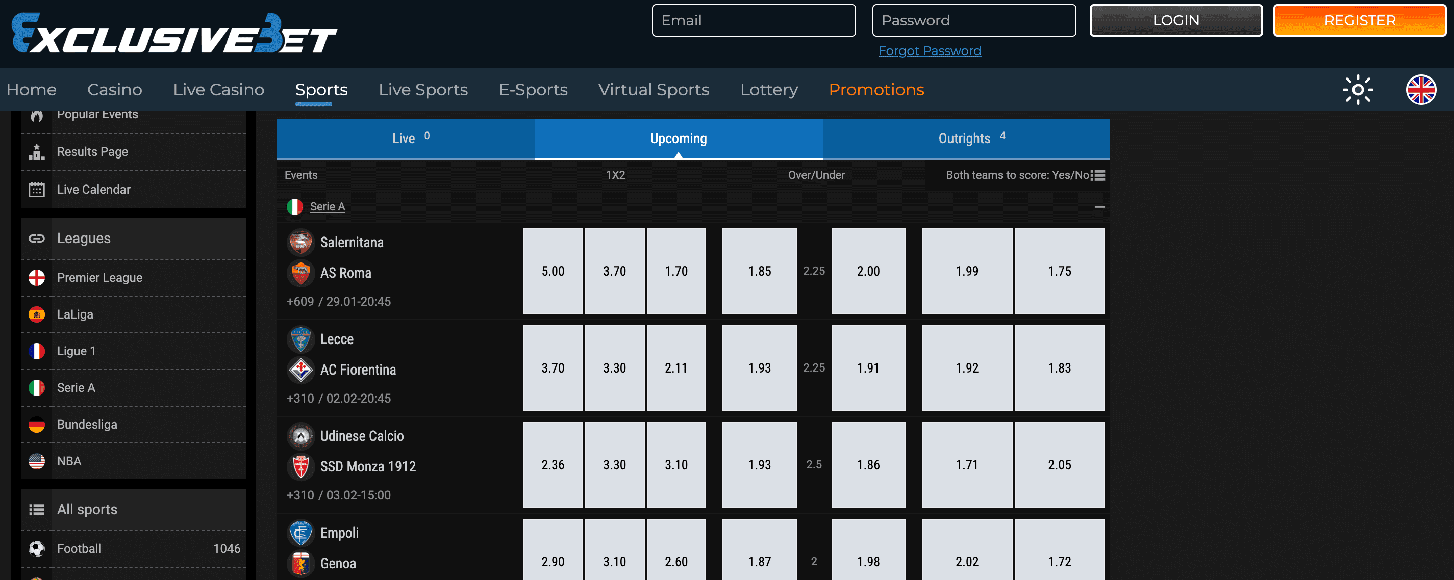 Exclusivebet Live Betting